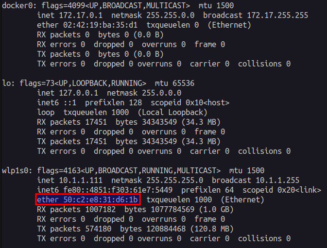 $ ifconfig
